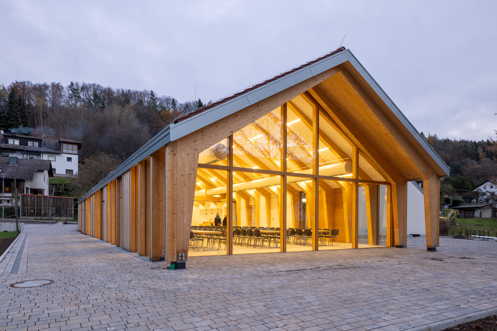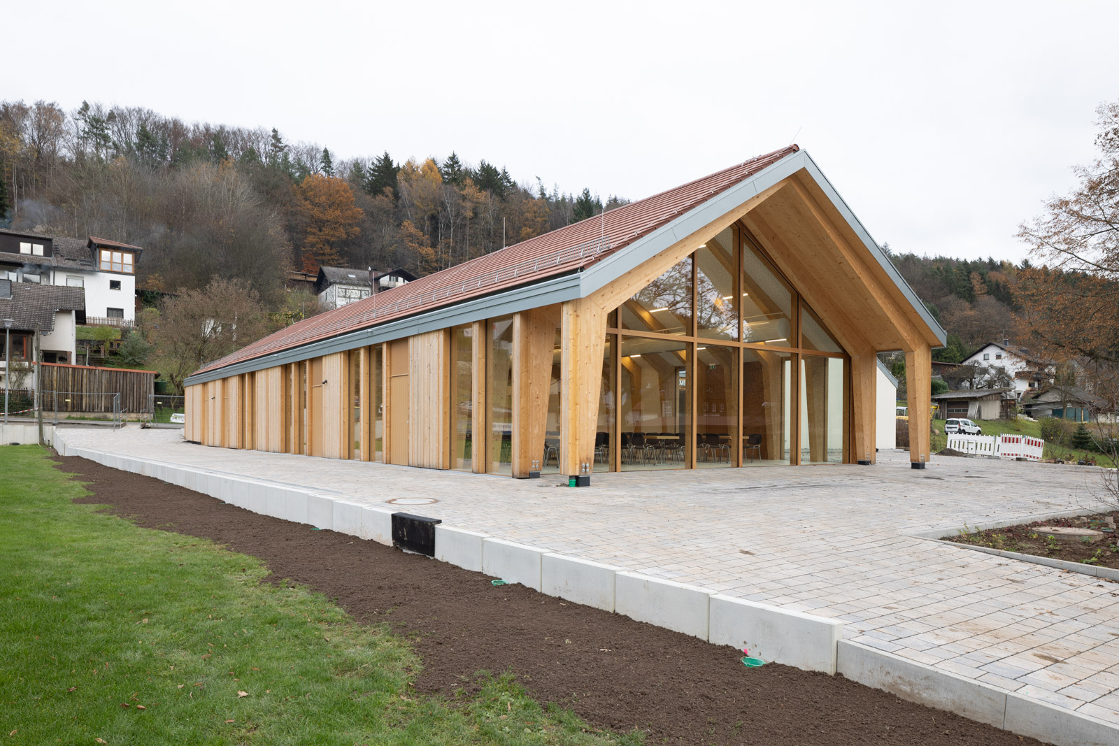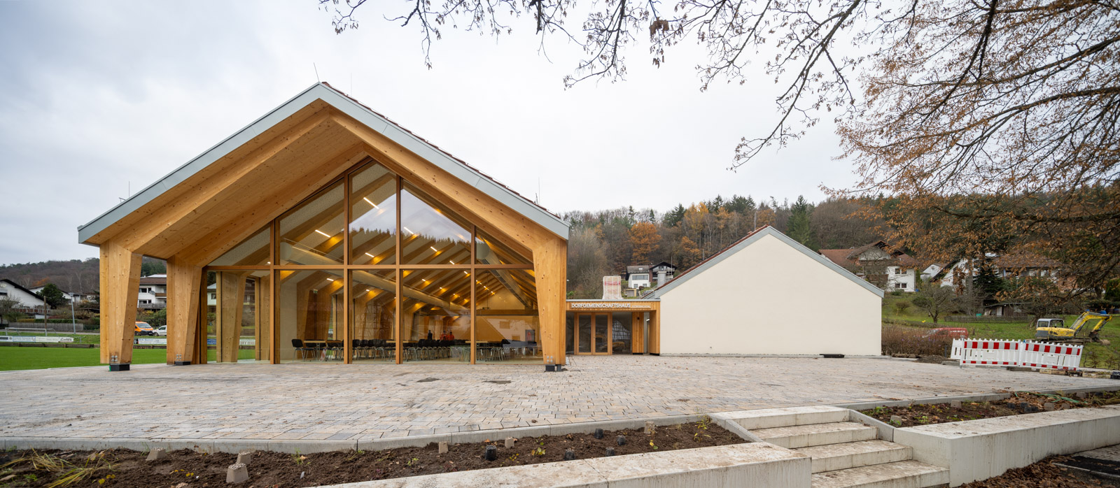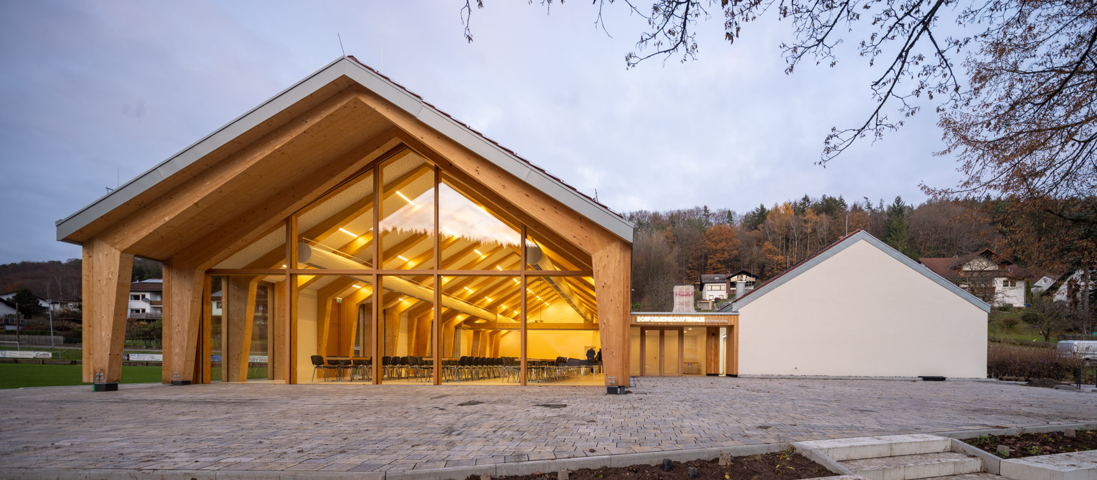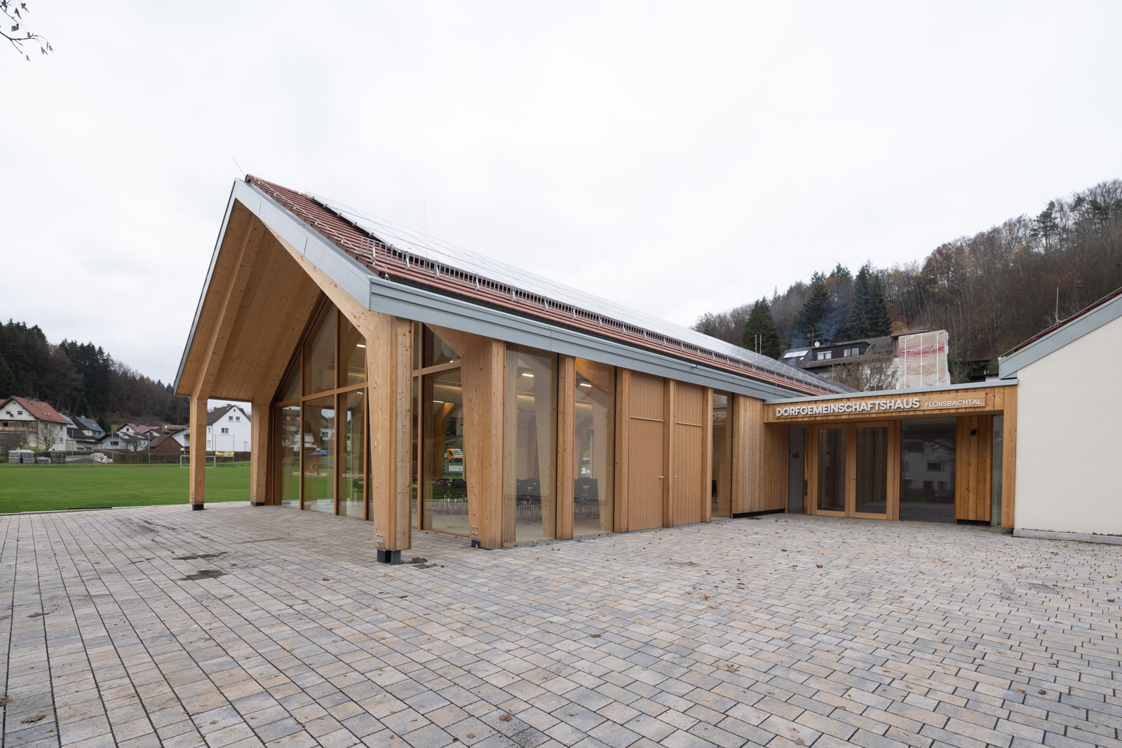 Das Dorfgemeinschaftshaus Flörsbachtal wurde als ressourcenschonender Umbau mit Erweiterung realisiert. Die Gestaltung greift dabei das Motiv der ortsüblichen „Scheune“ auf. Der multifunktionale Bau vereint Vereinsleben, Veranstaltungen und sportliche Nutzung unter einem Dach.