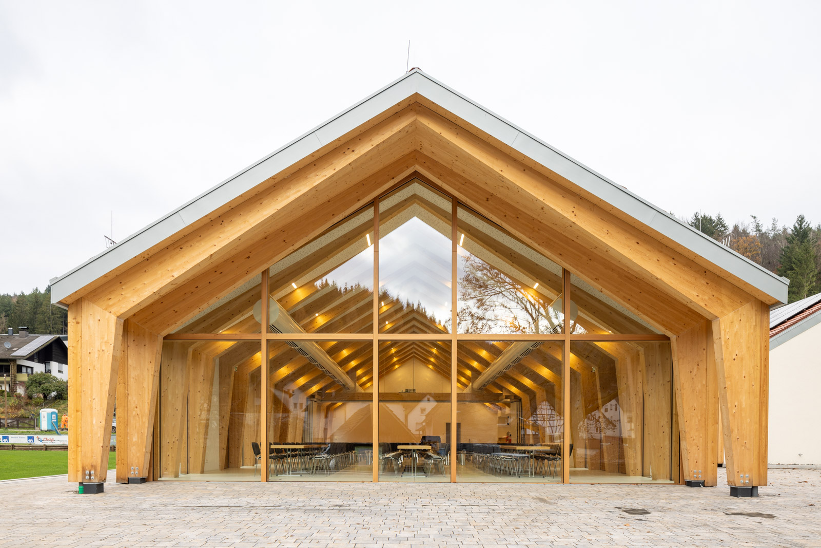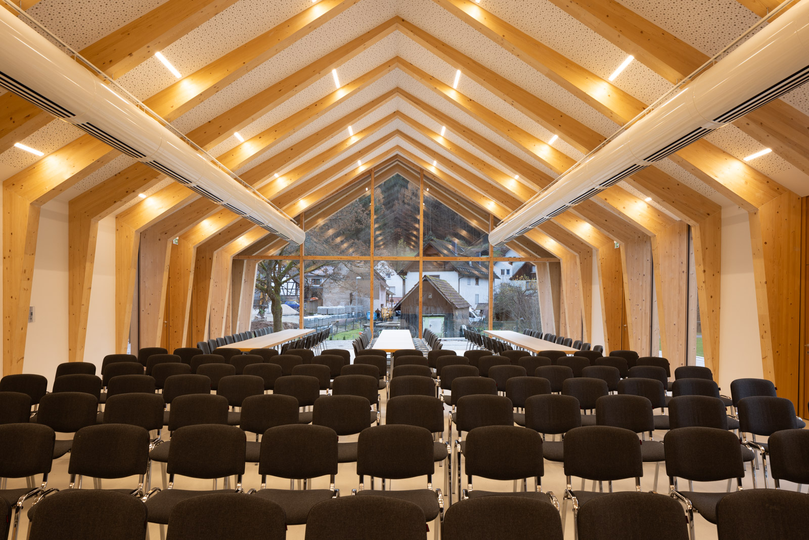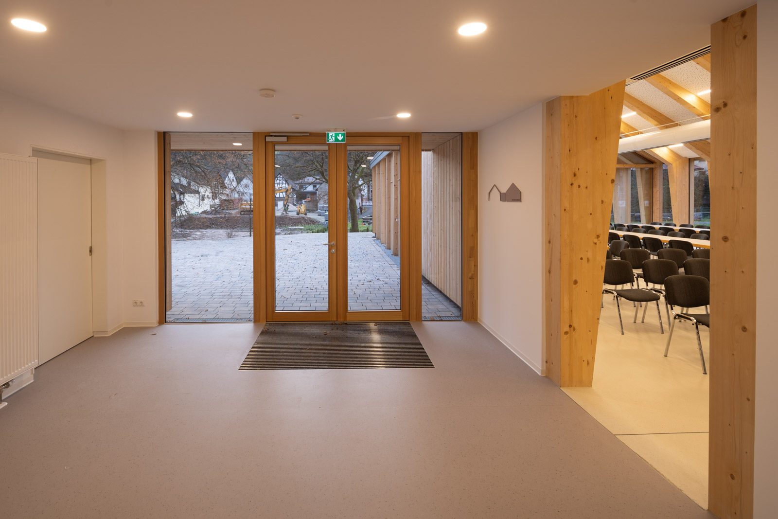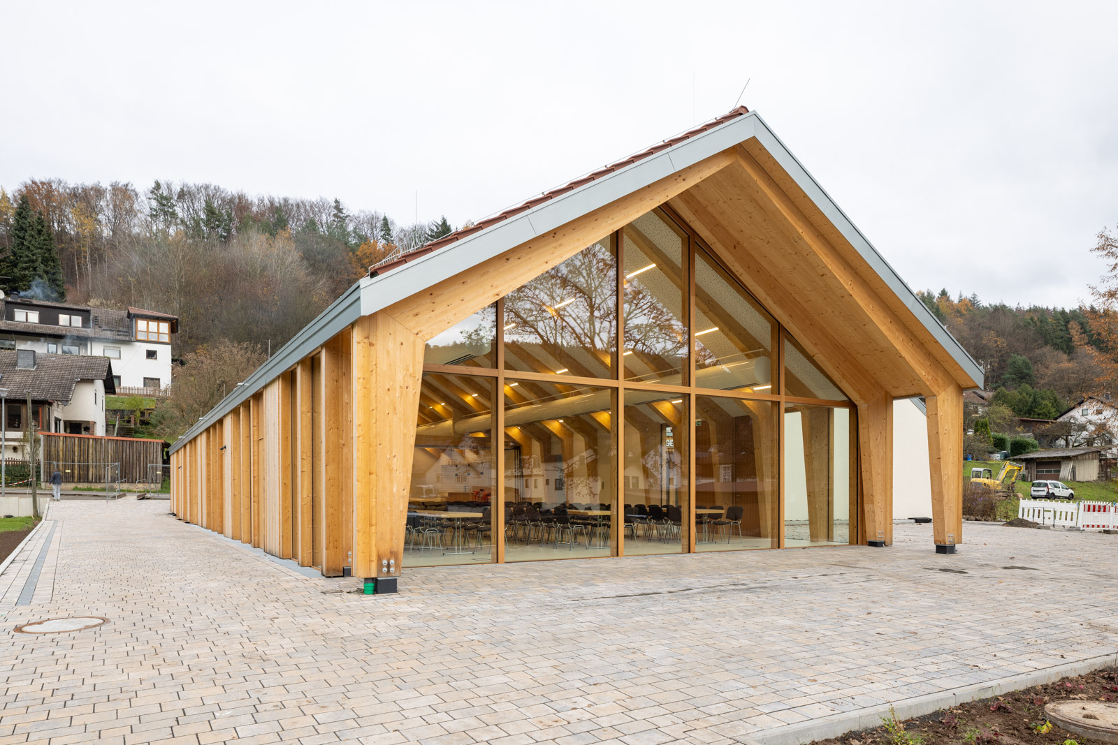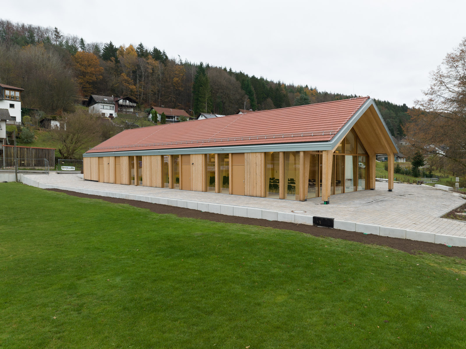 Das Dorfgemeinschaftshaus Flörsbachtal wurde als ressourcenschonender Umbau mit Erweiterung realisiert. Die Gestaltung greift dabei das Motiv der ortsüblichen „Scheune“ auf. Der multifunktionale Bau vereint Vereinsleben, Veranstaltungen und sportliche Nutzung unter einem Dach.