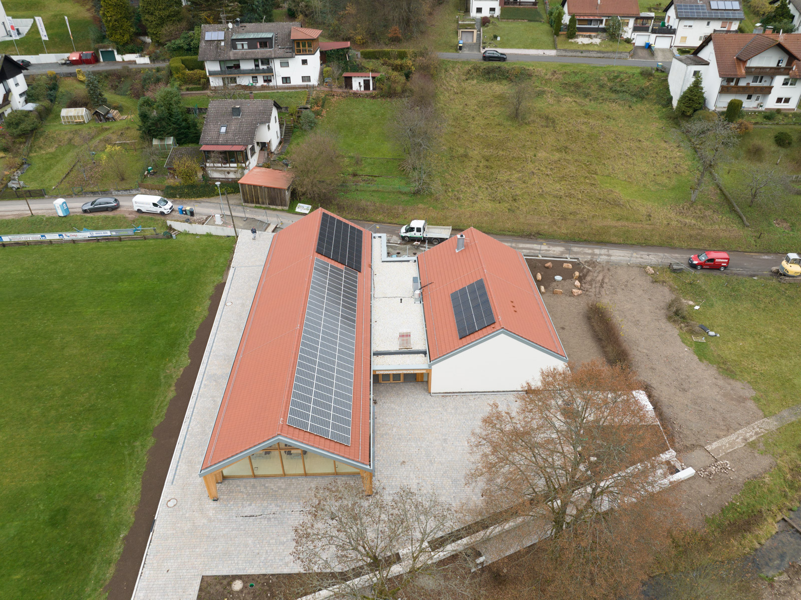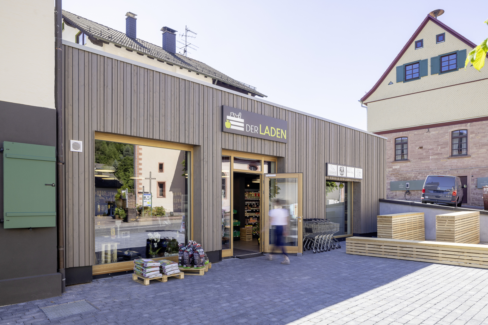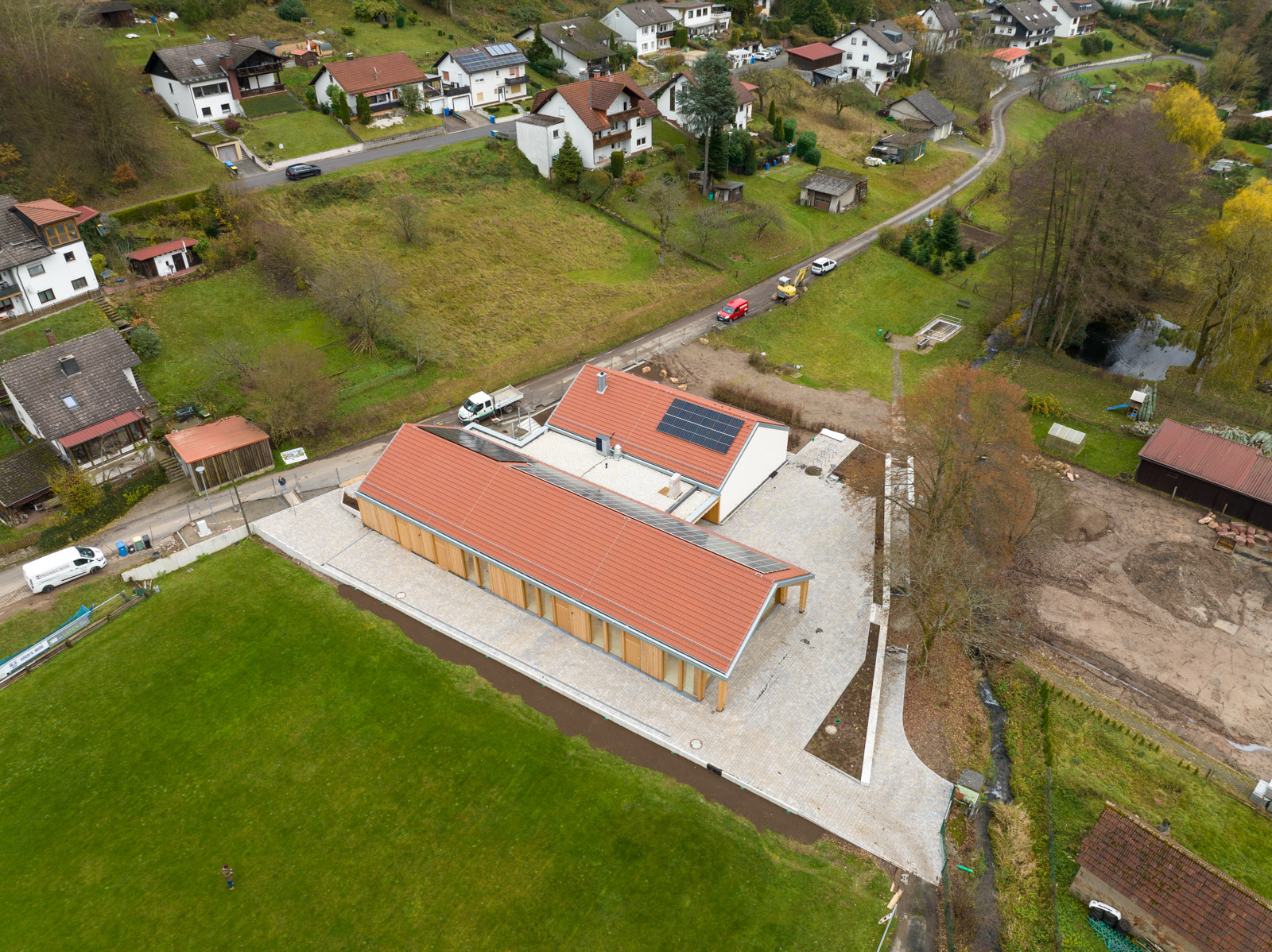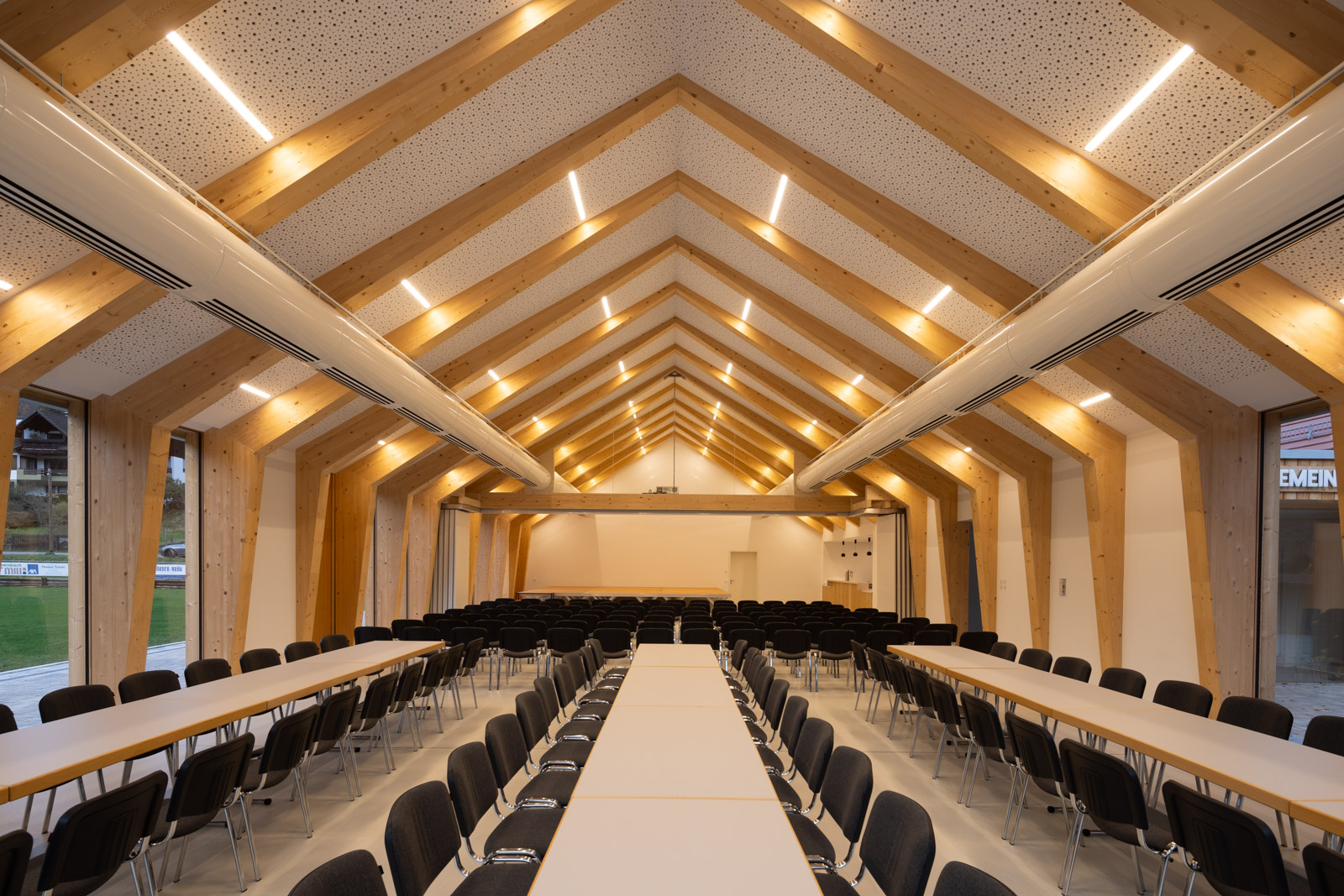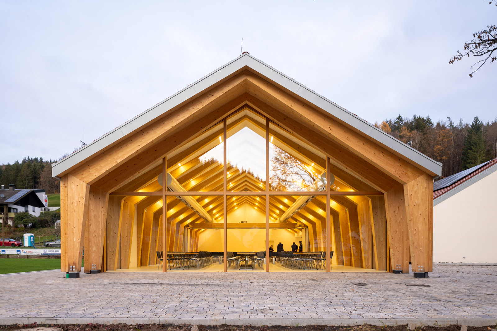 Das Dorfgemeinschaftshaus Flörsbachtal wurde als ressourcenschonender Umbau mit Erweiterung realisiert. Die Gestaltung greift dabei das Motiv der ortsüblichen „Scheune“ auf. Der multifunktionale Bau vereint Vereinsleben, Veranstaltungen und sportliche Nutzung unter einem Dach.